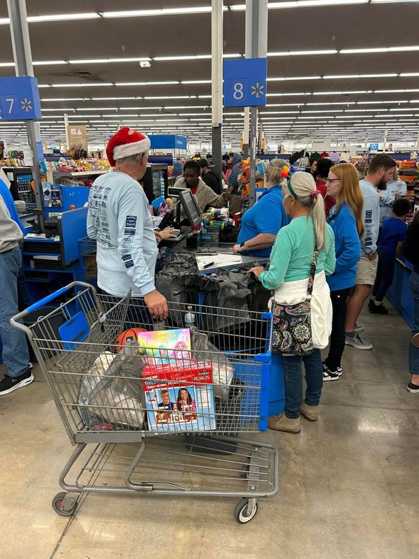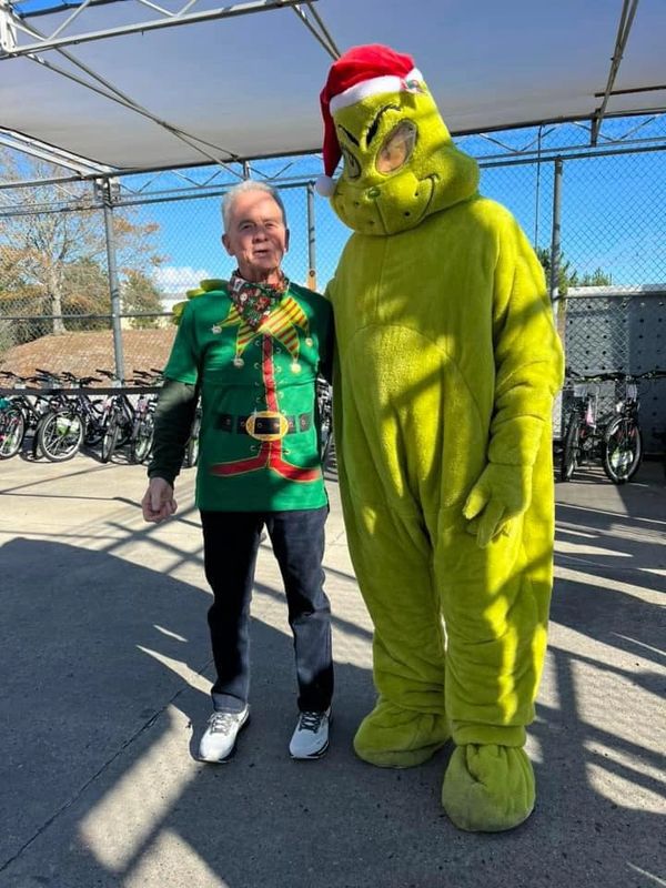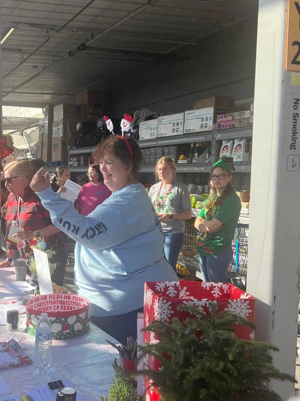 Pres. Peggy Lilly presents the CFC contribution for the Toy Run to Jerome Munna.